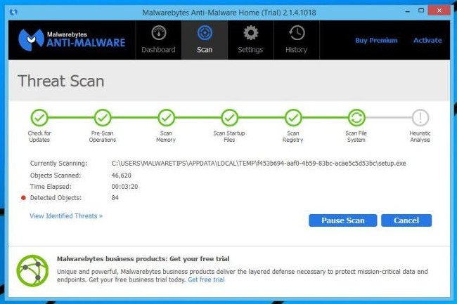 Bước 2: Sử dụng Malwarebytes Anti-Malware để quét hệ thống