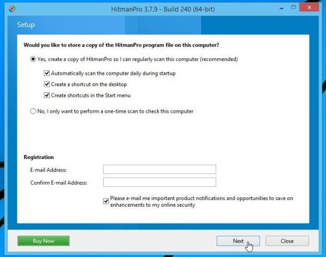 Click chọn Next để cài đặt HitmanPro trên máy tính của bạn.