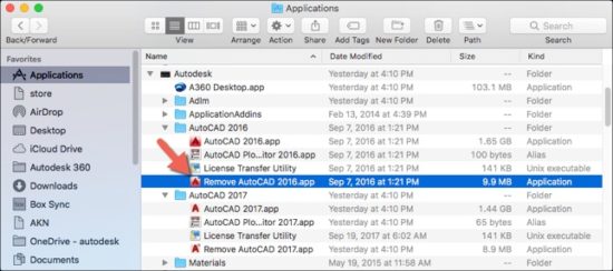 Gỡ bỏ các sản phẩm Autodesk khác trên Mac OS