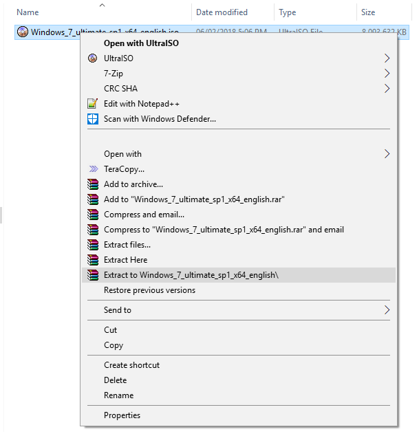 Bước 1: Tắt hết các chương trình mà bạn đang chạy, sau đó hãy chắc chắn rằng file Win 7 của bạn đang nằm ở phân vùng khác với phân vùng mà bạn định cài đặt (để ở ổ D, E hoặc F). Giải nén file file cài bằng phần mềm giải nén như winrar.