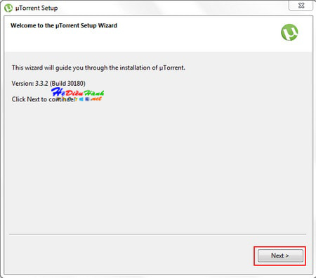 Bước 3: Click Next. Tại hộp thoại tiếp theo là những điều khoản mà nhà sản xuất yêu cầu bạn buộc phải đồng ý mới có thể tiếp tục để cài uTorrent.