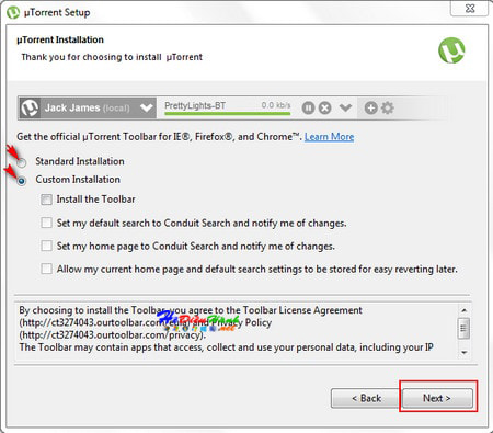 Bước 6: Click Next. Chọn một trong 2 chế độ để cài uTorrent